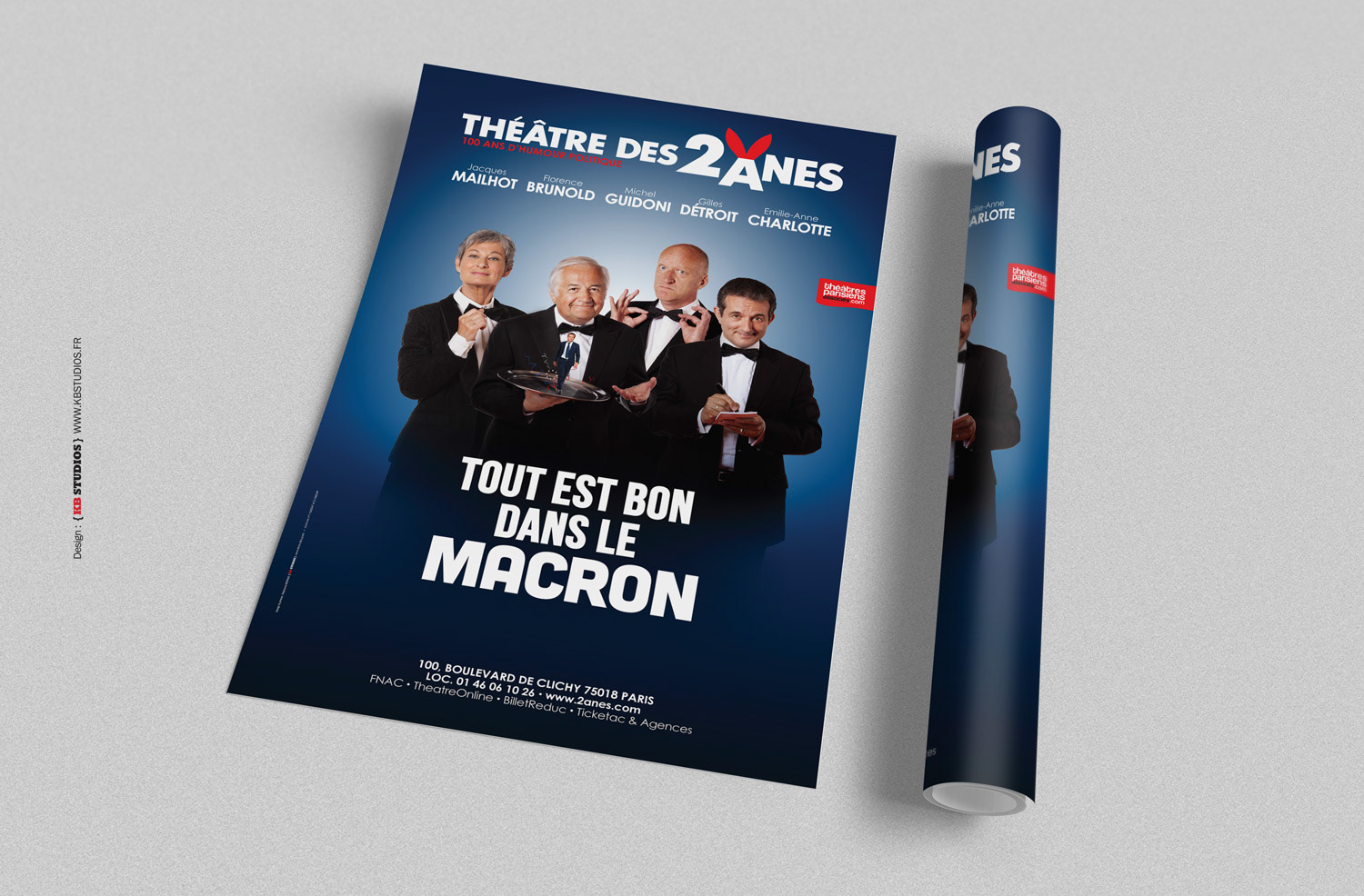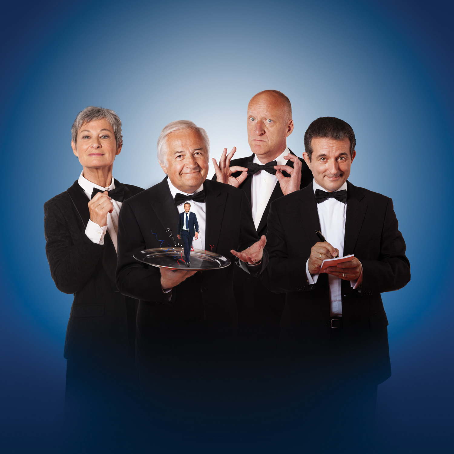 Photographies et affiche du nouveau spectacle. A partir du vendredi 29 septembre 2017 "Les Deux Anes" se mettent en Marche...pour une nouvelle revue "Macronbiotique" Avec Michel Guidoni,Florence Brunold,Gilles Détroit et Jacques Mailhot.