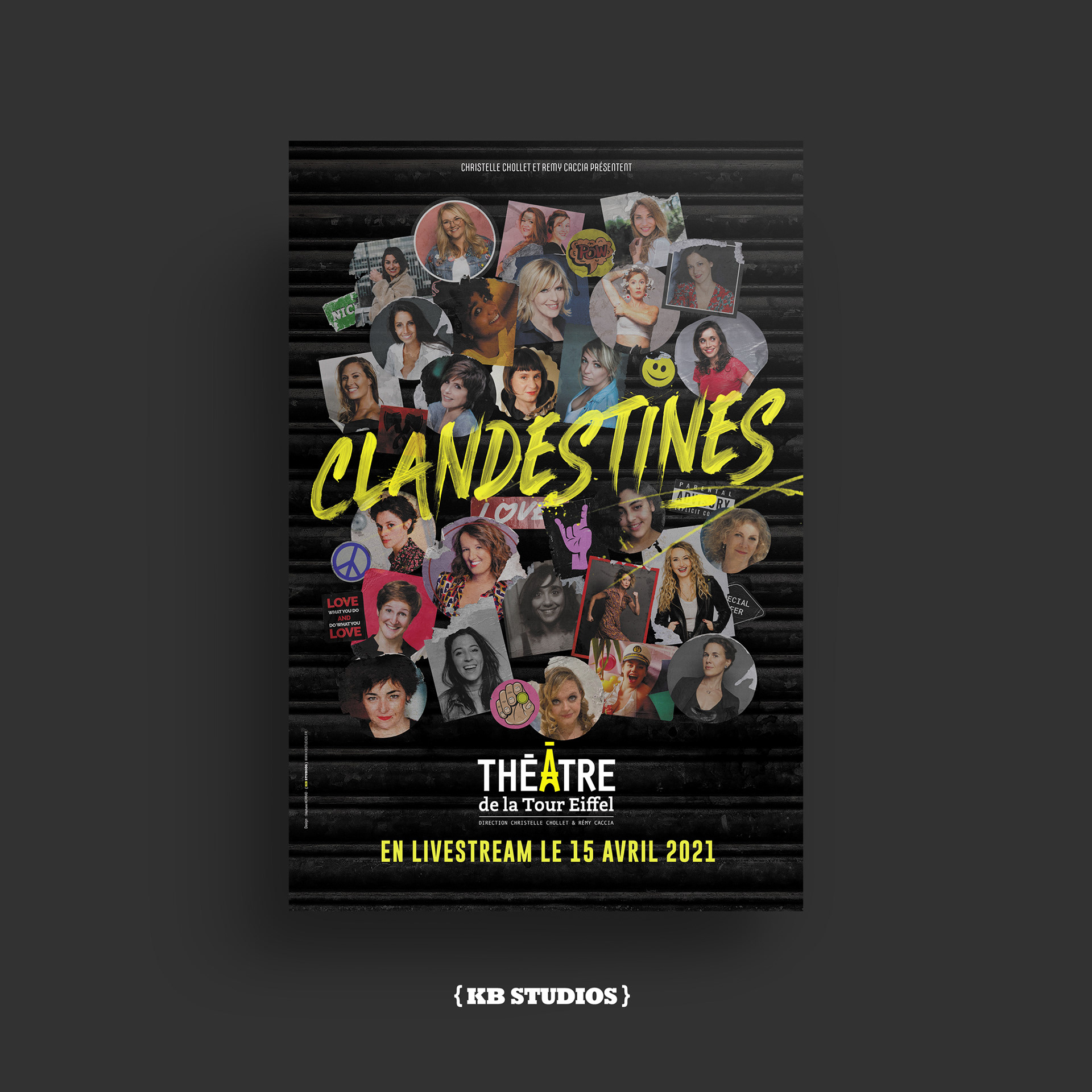 Affiche, visuels et écrans vidéos de la soirée "CLANDESTINES" en direct du Théâtre de la Tour Eiffel