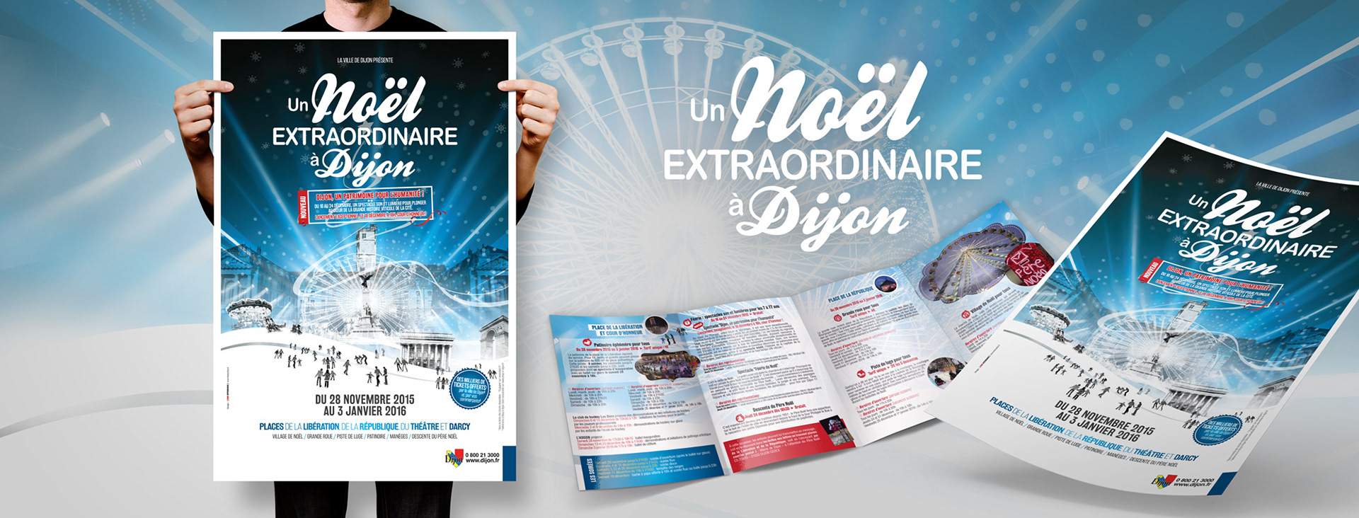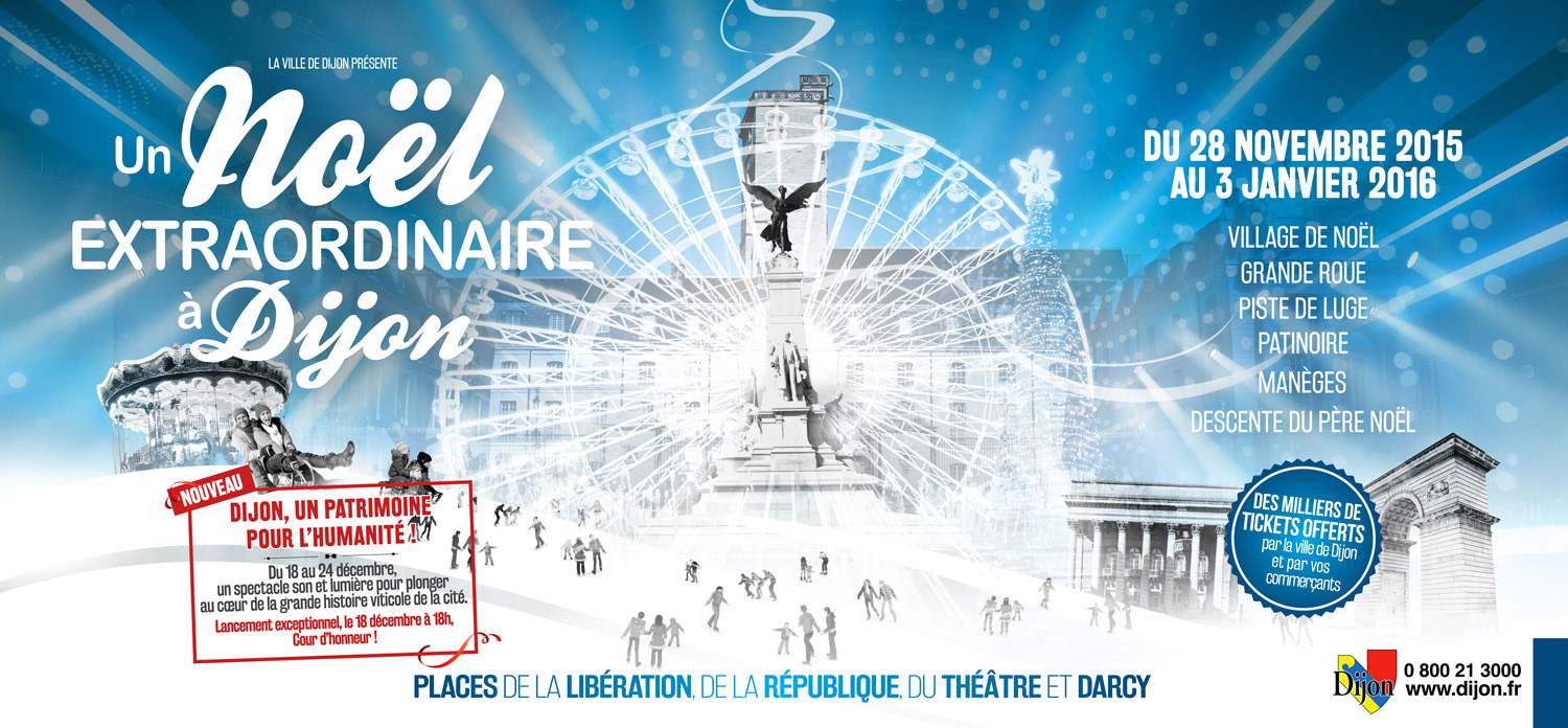 Un Noël Extraordinaire à Dijon Conception et réalisation des visuels, affiches, bâches, publicité et dépliants