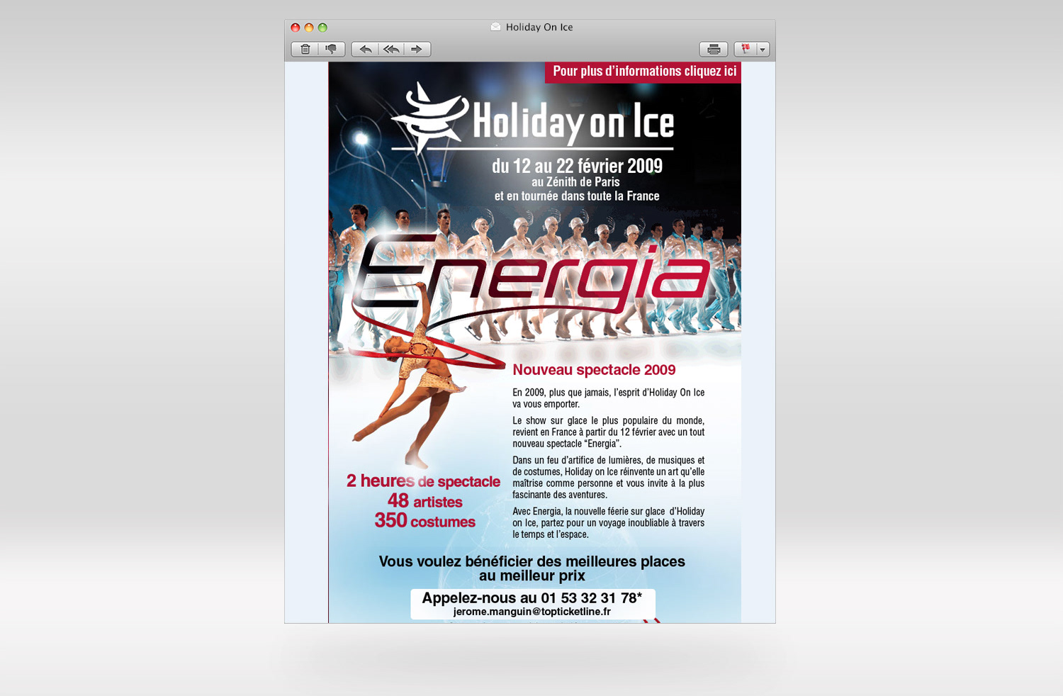 Conception, réalisation et envoi des newsletters du spectacle Holiday On Ice